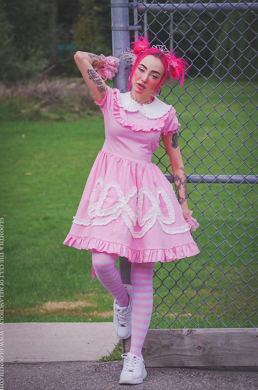 Recently Lucy Lovesick modeled it for us in this cute casual shoot! Paired with sparkly jewelry and a little tiara it’s a pink-princess sort of look.