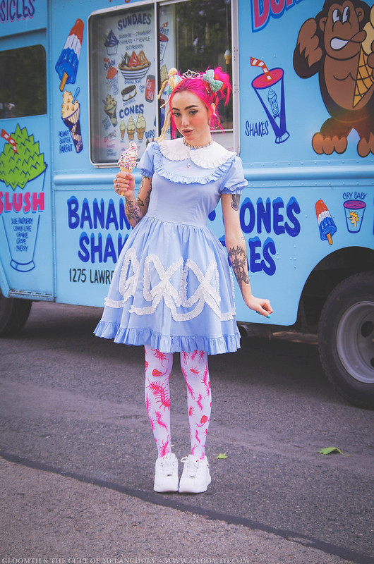 We were SO THRILLED to get permission to shoot with this amazing ice cream truck! I absolutely love the aesthetic of ice cream trucks, I grew up somewhere that didn’t have them and they always seemed like such a “city kid” experience to me. I’ve long wanted one in a photoshoot and it finally happened by chance! All the hand painted treats and knock off characters on the sides make me so happy even now. Thanks Donkey Kone!!!!