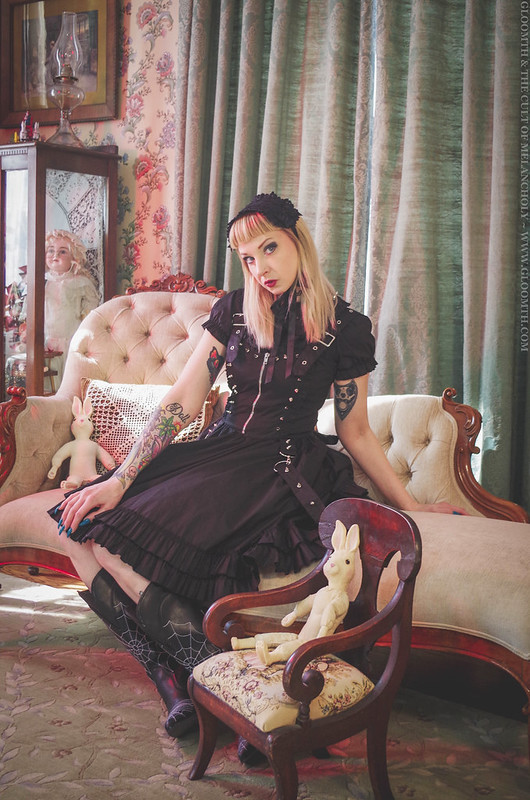 The first set is with model Fine Lines- who’s one of the o.g. Gloomth Girls as we’ve been shooting together for well over a decade. The vibe for these photos is sort of a Gothic Dollhouse.
