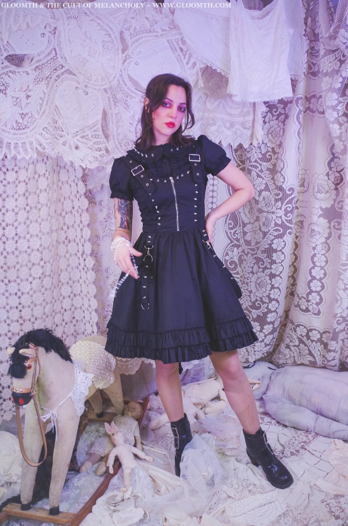 It’s official! Our spiked “Weaponized” jumperskirt is underway for production, we’ll have them in store in the nearish future!!!! I’m so excited to offer this style as it’s so fun to style and coordinate. They’ll be available in black, dark red, and lavender to start with and in sizes S-6X. The jsk comes with the removable spiked strap and cross details.