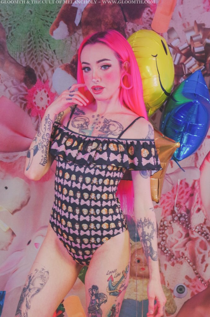 From kawaii and cute prints like doll parts and vintage toys, to goth-ier styles like our crucifix and moths prints! All the swimwear we offer is also available in sizes up to a 3X (and larger for some styles). It’s all made to order so be sure to get your order in long before your summer holiday. 🙂