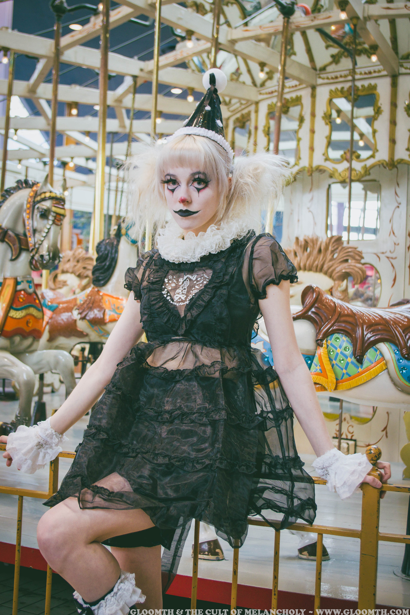 Maddyvstheinternet styled this fun clown-core look using our “Black Licorice” dress and a handmade clown hat and bloomers!