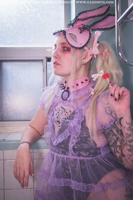 Easter is one of those holidays I rarely do specific photoshoots for. You’d think with all the pastels, bunnies, and rising from the dead themes it’d be right up my alley. Here’s some fun Easter-ish photos I did with model Azura Rose and a pink vinyl bunny mask I found on clearance at a party store after Halloween.