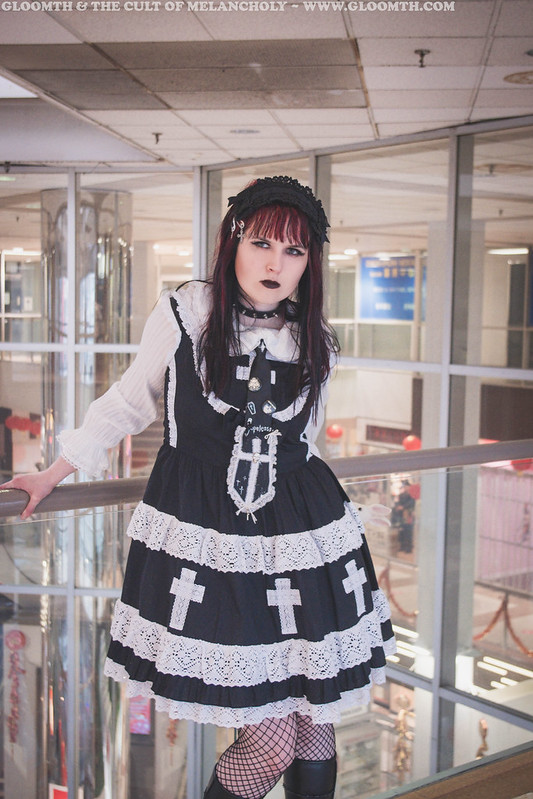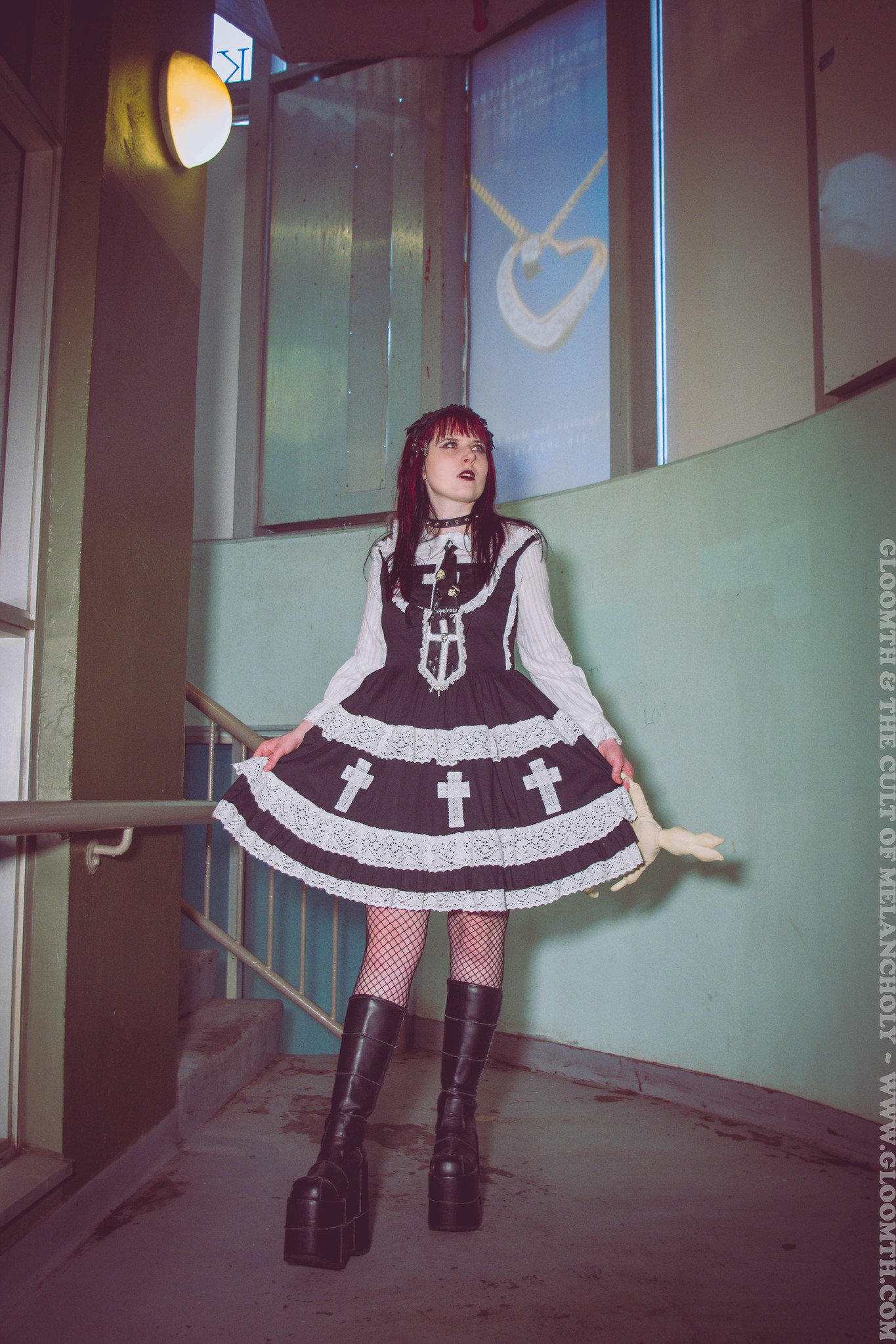 Recently I did a sort of mall-goth inspired shoot with Paige Marina! Using our “Church” dress as a base to create thus fun outfit, we incorporated huge platforms, fishnets, and a simple blouse with a custom necktie I made for myself. 🙂