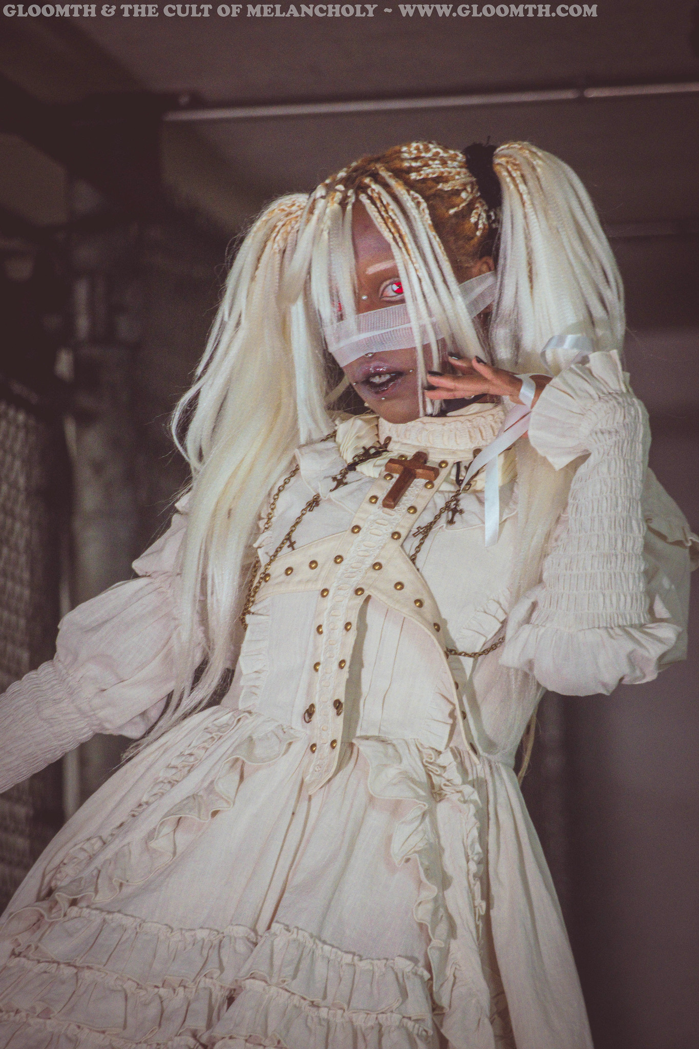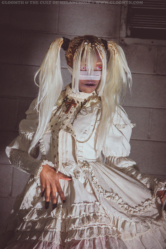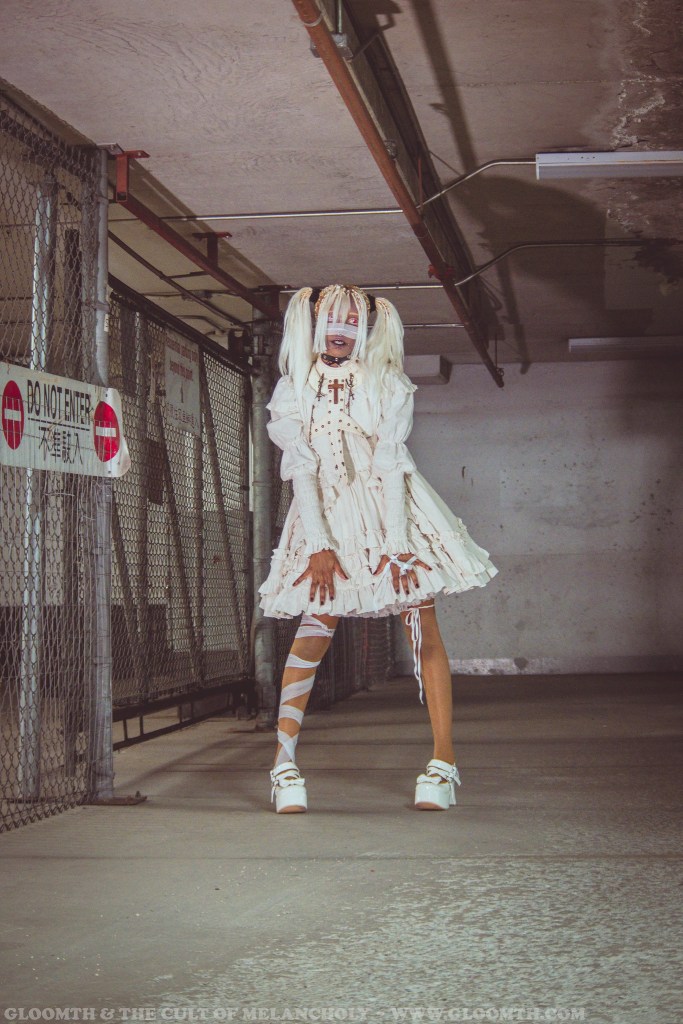 This fall I got to shoot this super creepy and dark look with our “Ossuary” dress and Dolly Momoiro! She styled this entire look and it’s just unbelievable! Part mummy part club kid, it’s just awesome.
