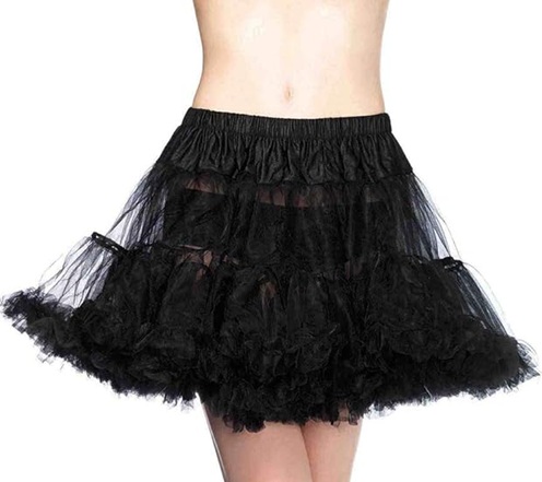 Tulle Mini Petticoat: Not planning to wear Lolita every day? A tulle petticoat is often short in length (under 18″) and made of thin netting (tulle). These petticoats are great for layering over an A-line to change up the silhouette, or for infrequent events. Tulle can crumple and flatten faster than other fabrics so it’s less practical for daily use. These can be found at costume shops or online pretty cheaply! Brands like “Leg Avenue” make them in fun colors and in plus sizes also.